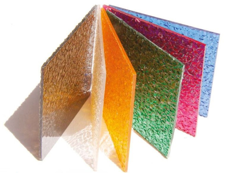 ورق های طرح دار شرکت جی لیان جی با استفاده از روش Roll Out تولید میگردند، ضخامت تولید این ورق ها بین 1.2 تا 16 میلیمتر و در طرح های گالشی، مشجر و یخی میباشد. از آنجایی که نقش روی این ورق ها سبب شکست نور میشود شیء پشت ورق ها به طور کامل و با وضوح دیده نمیشود، این ورق ها با توجه به طرح ها و رنگ های متنوع تولید و دارای ظاهری زیبا می باشند.