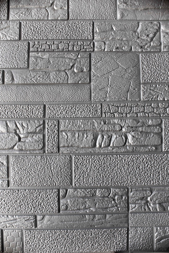 دیوارپوش فومی پشت چسب دار - طرح سنگ آنتیک نقره ای ابعاد 70 در 70
