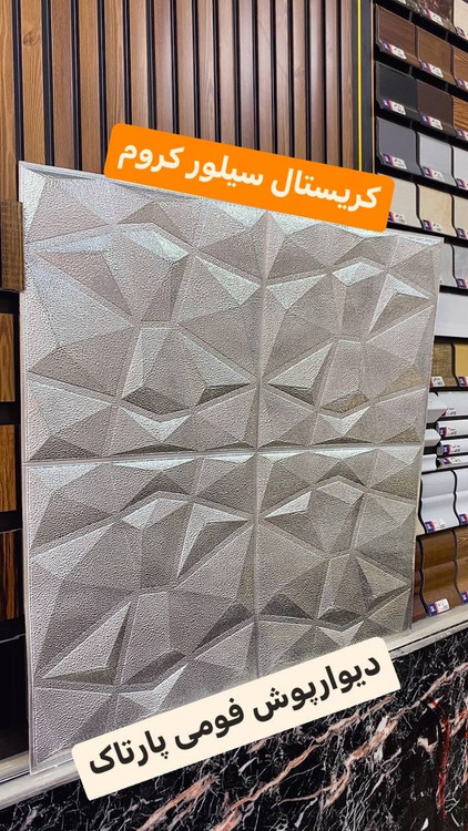 دیوارپوش فومی پشت چسب دار - طرح کریستال سیلور کروم ابعاد 70 در 70