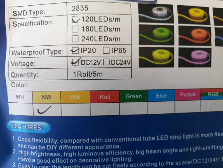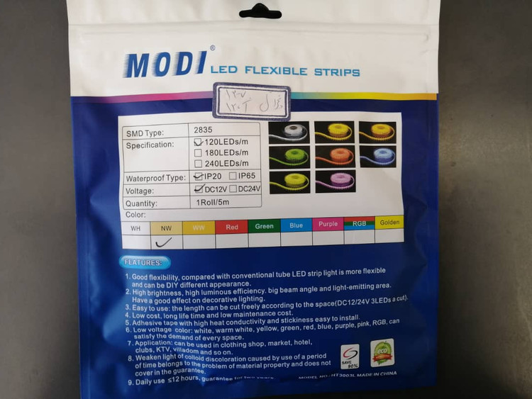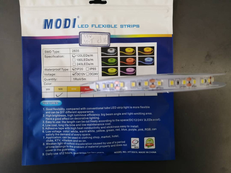 تراکم (تعداد لامپ) در هر متر: 120 عدد